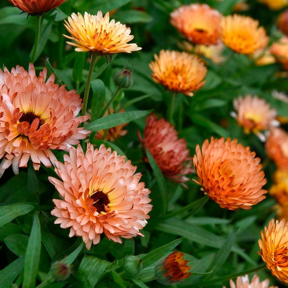 La Caléndula Orange Flash tiene pétalos de color naranja suave y un corazón marrón oscuro. Los pétalos son comestibles y pueden utilizarse, por ejemplo, como guarnición de una ensalada de verano. Las caléndulas florecen con facilidad, alcanzan unos 60 cm de altura y también son adecuadas como flor cortada.