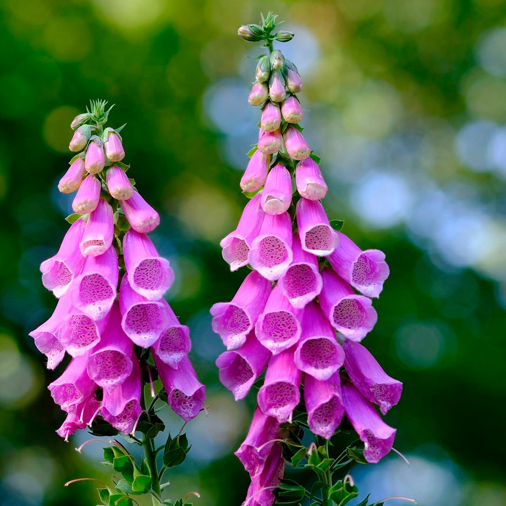 Planta bianual de tallo erguido, con flores en forma de campana en tonos púrpura, rosa o blanco. Muy ornamental y elegante, ideal para borduras o jardines de diseño. Atrae polinizadores como abejas y mariposas. Es tóxica si se ingiere.