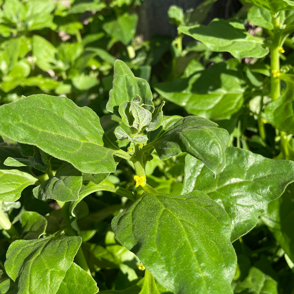Espinaca perenne y trepadora. Soporta altas temperaturas, produciendo hojas de sabor agradable y suave todo el verano.