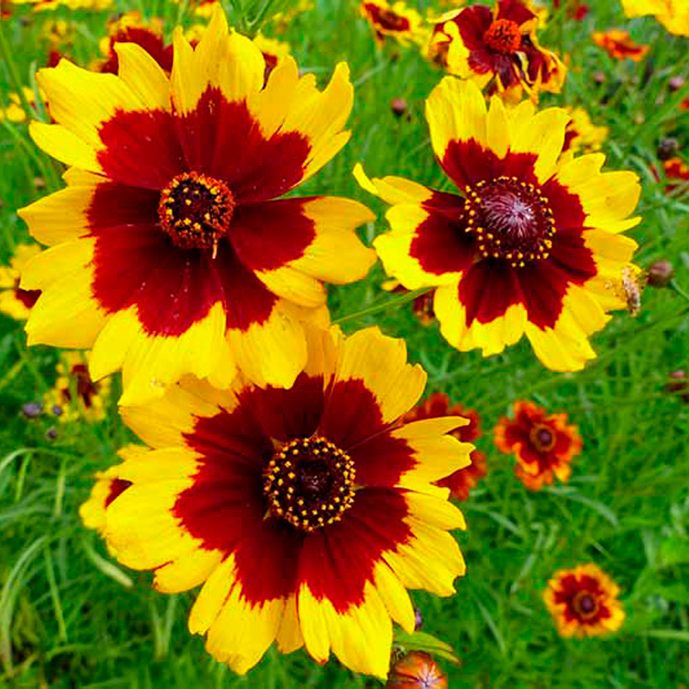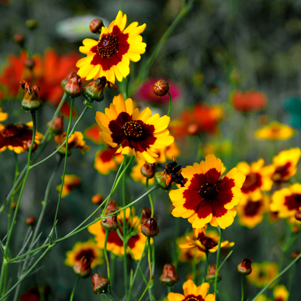 Planta anual con flores vibrantes en tonos amarillos y marrones. Ideal para bordes, macetas o huertas. Atrae polinizadores y puede utilizarse en arreglos florales o para teñidos naturales. De fácil cultivo, con floración prolongada y gran valor ornamental.