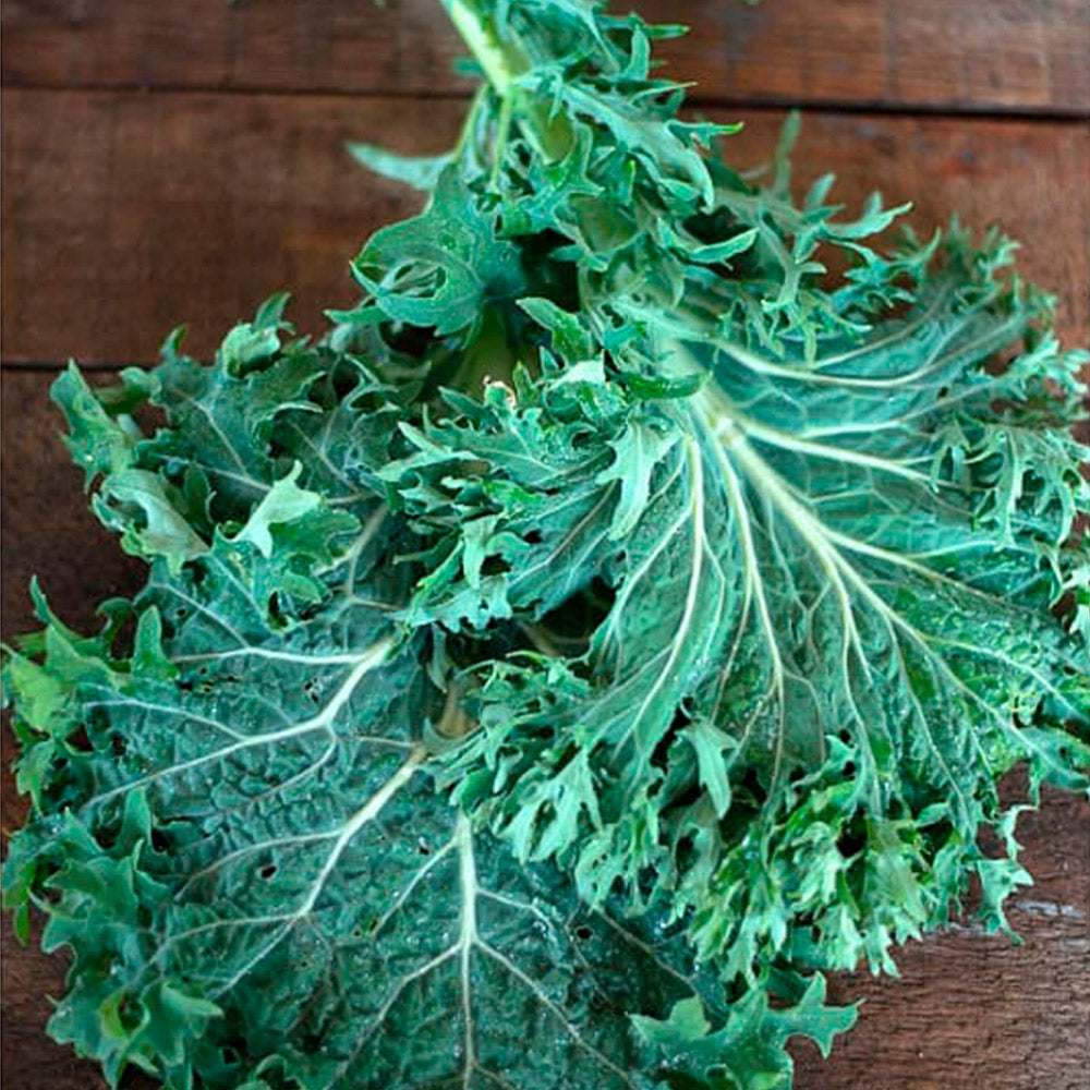 El Kale Ruso Blanco es una variedad siberiana pálida, tierna y dulce, con hojas delgadas y suavemente lobuladas. Tiene una base de color verde grisáceo y venas blancas.