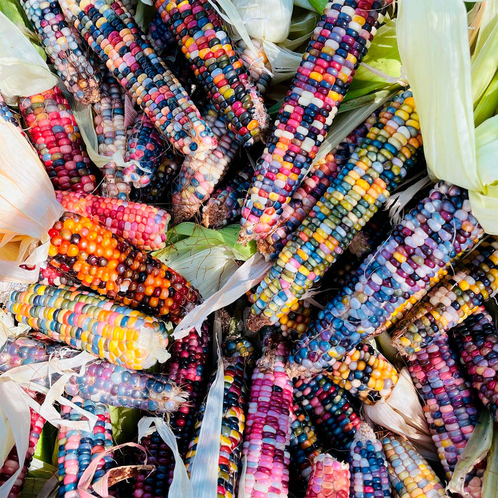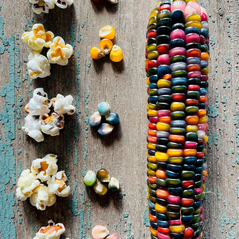 La variedad "glass gem" fue desarrollada por Carl Barnes, un agricultor americano, que fue cultivando variedades de maíz viejas, seleccionando y sembrando granos de colores que salían de las variedades tradicionales más ancestrales de los nativos americanos.