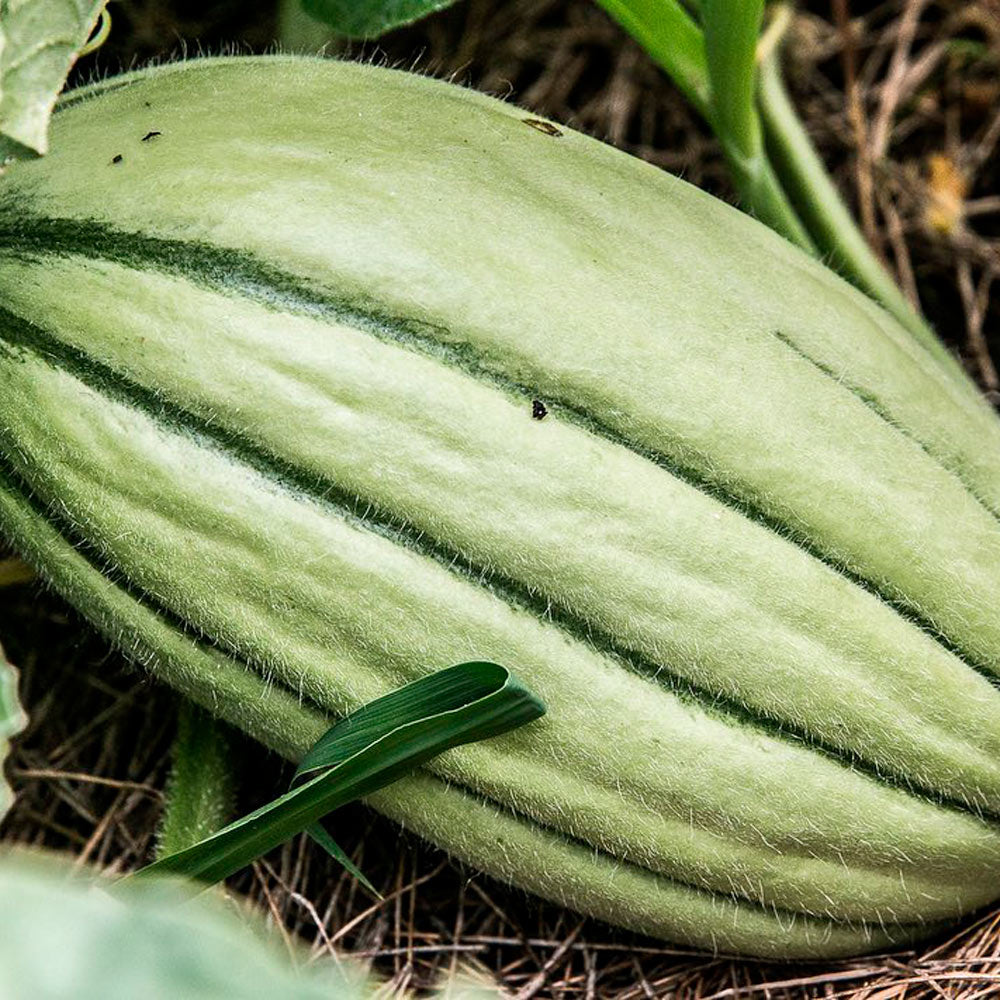 Esta variedad de melón muy antigua produce frutos de forma oval con un peso promedio de 3kg.