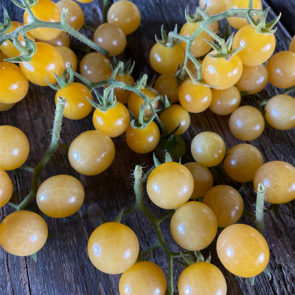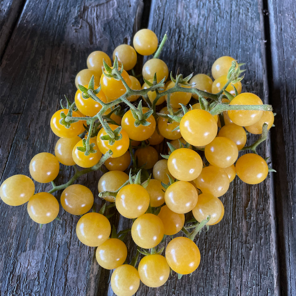 El tomate Cherry blanco es una variedad de tomate pequeño y redondo, de color blanco cremoso. Tiene un sabor dulce y suave, con una textura jugosa y crujiente. Es perfecto para ensaladas, aperitivos o como adorno en platos gourmet. Su color único y su delicioso sabor lo convierten en una opción popular para agregar un toque especial a tus platos.