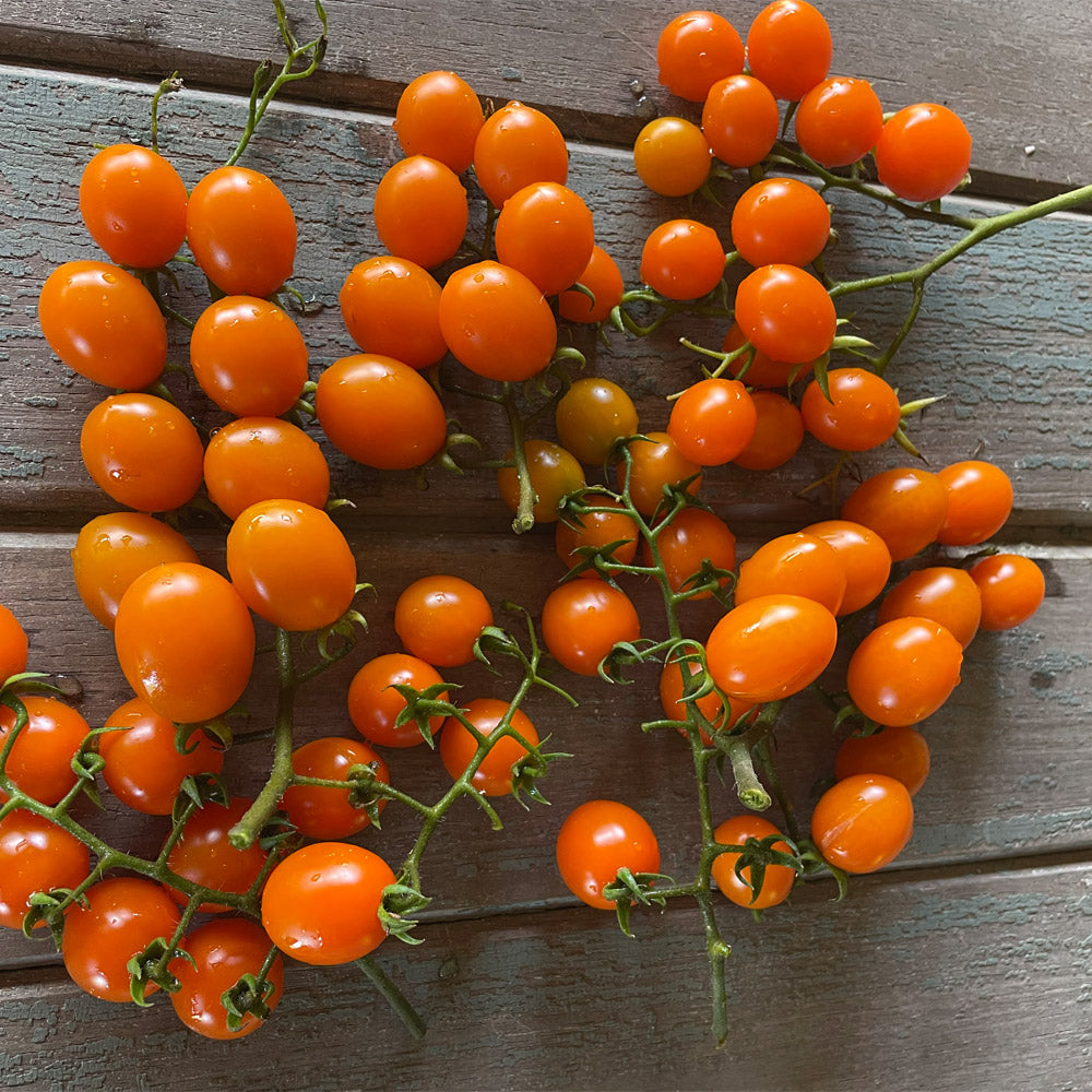 Esta variedad produce altos rendimientos de tomates Cherry naranja. Son muy dulces y sabrosos. Perfectos para ensaladas, guarniciones o creaciones culinarias, una excelente elección para huertos familiares.