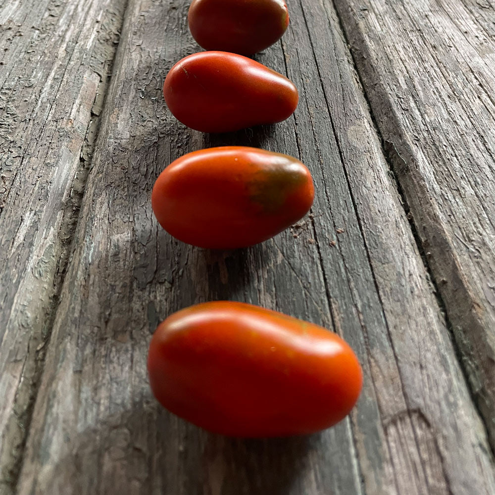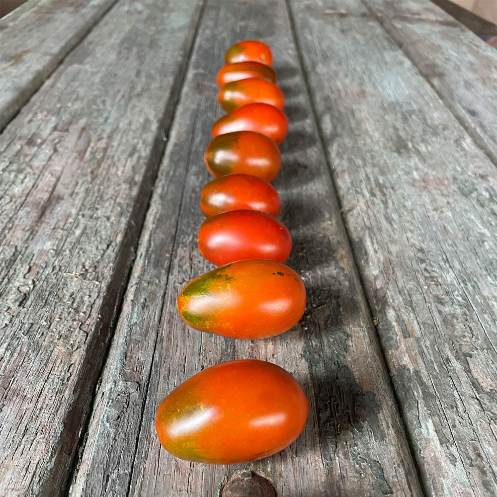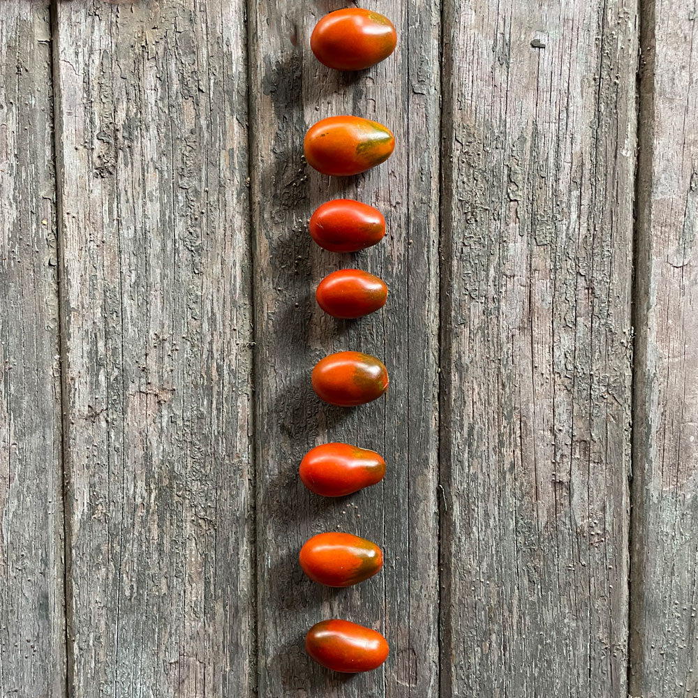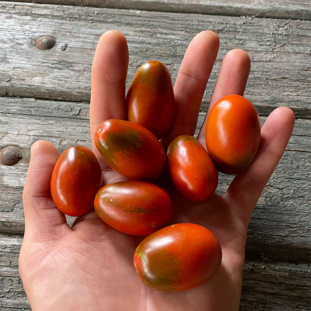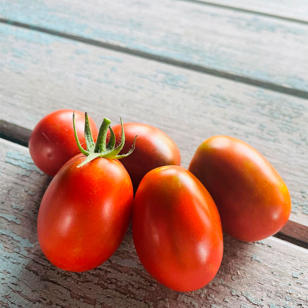 Esta variedad de tomate produce frutos en forma de pera, de color rojo chocolate y tiene un excelente sabor. Es muy vigorosa y produce por una larga temporada.