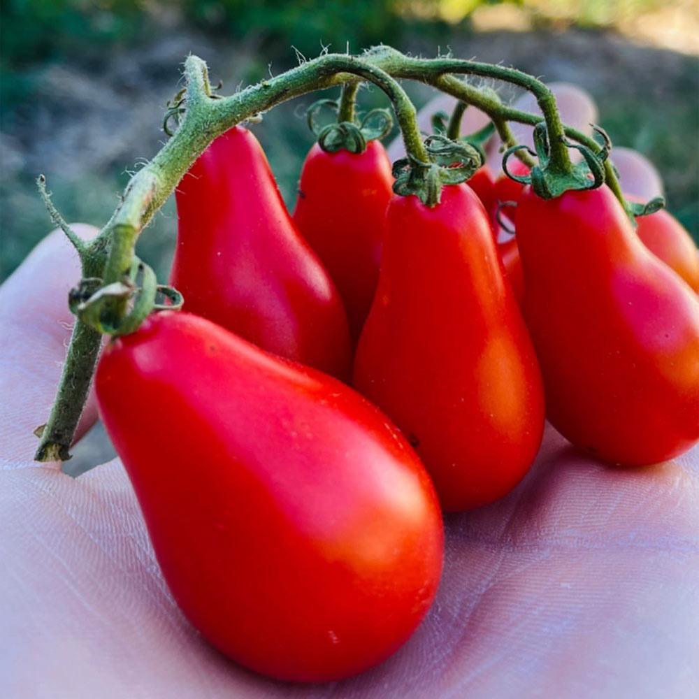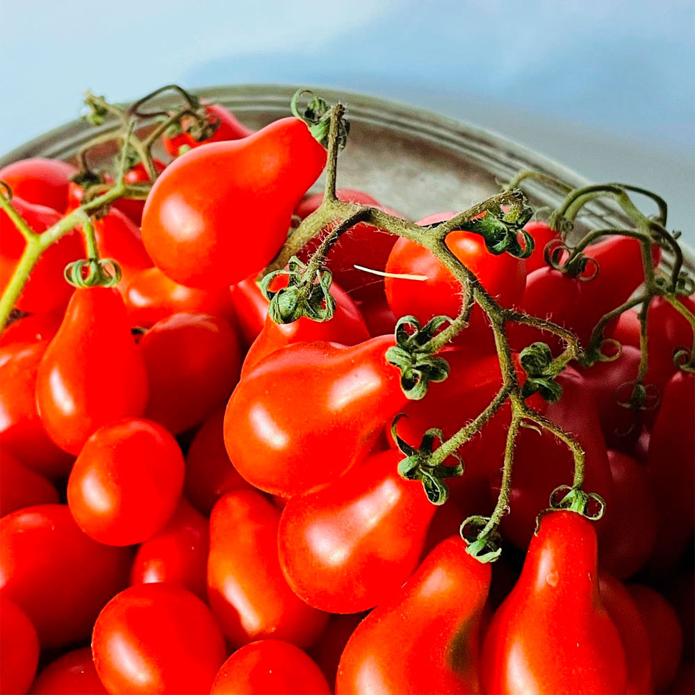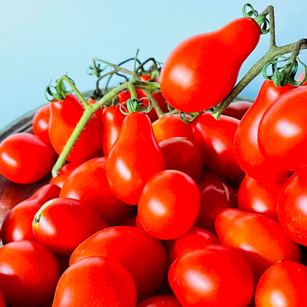 Esta variedad de tomate Cherry pera tiene un sabor afrutado y es muy productiva.