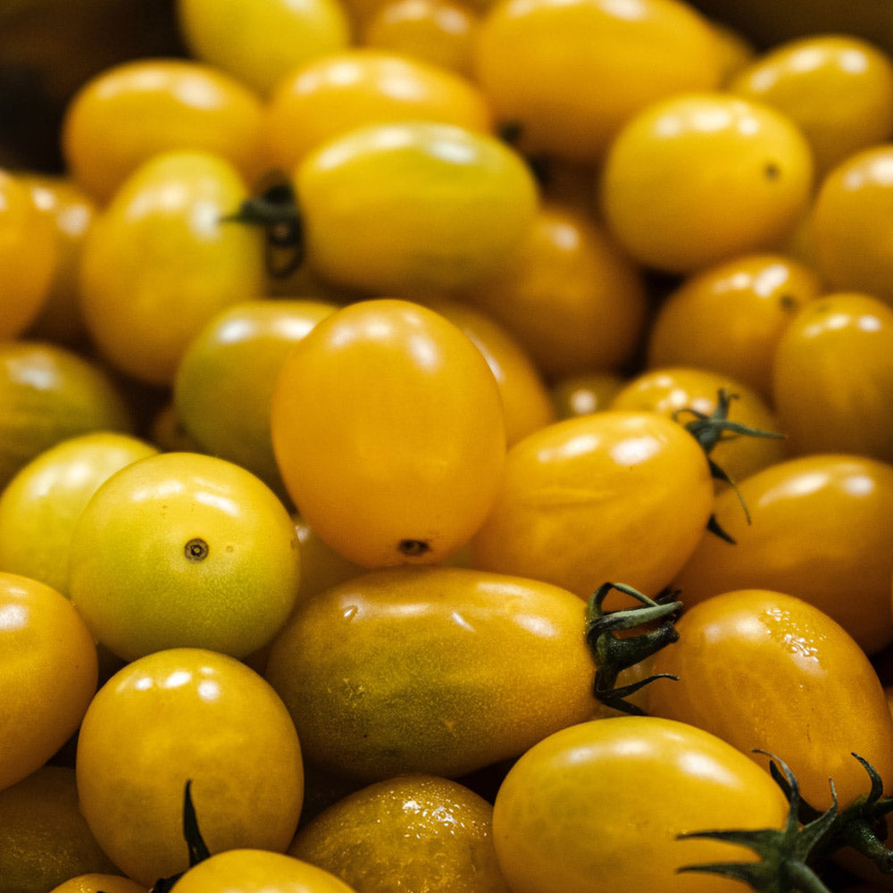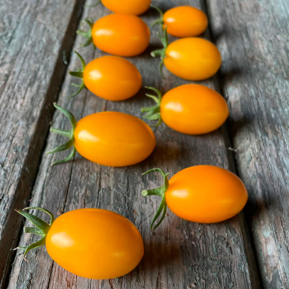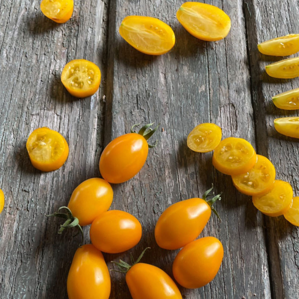 Este tomate Cherry amarillo ovalado tiene un excelente sabor y es muy productivo.