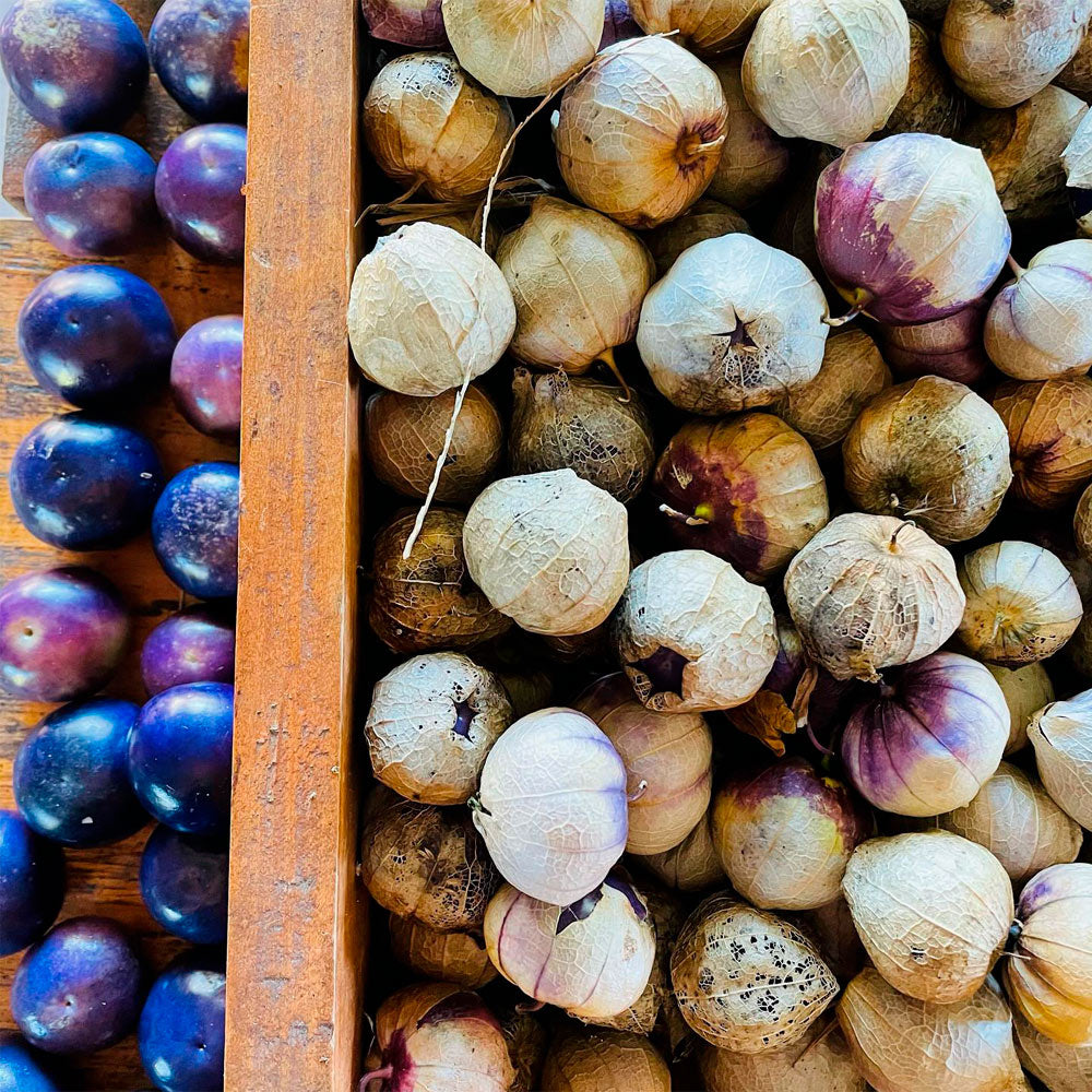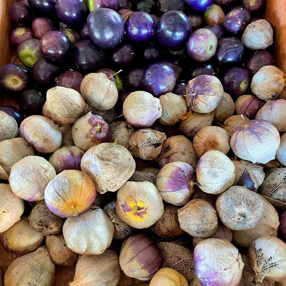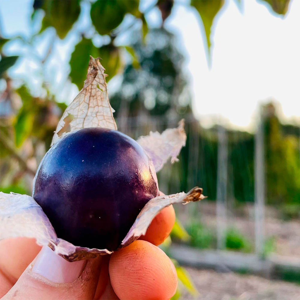 Esta planta prolífica está cubierta de frutos color violeta eléctrico que son ricos en nutrientes y de sabor dulce.